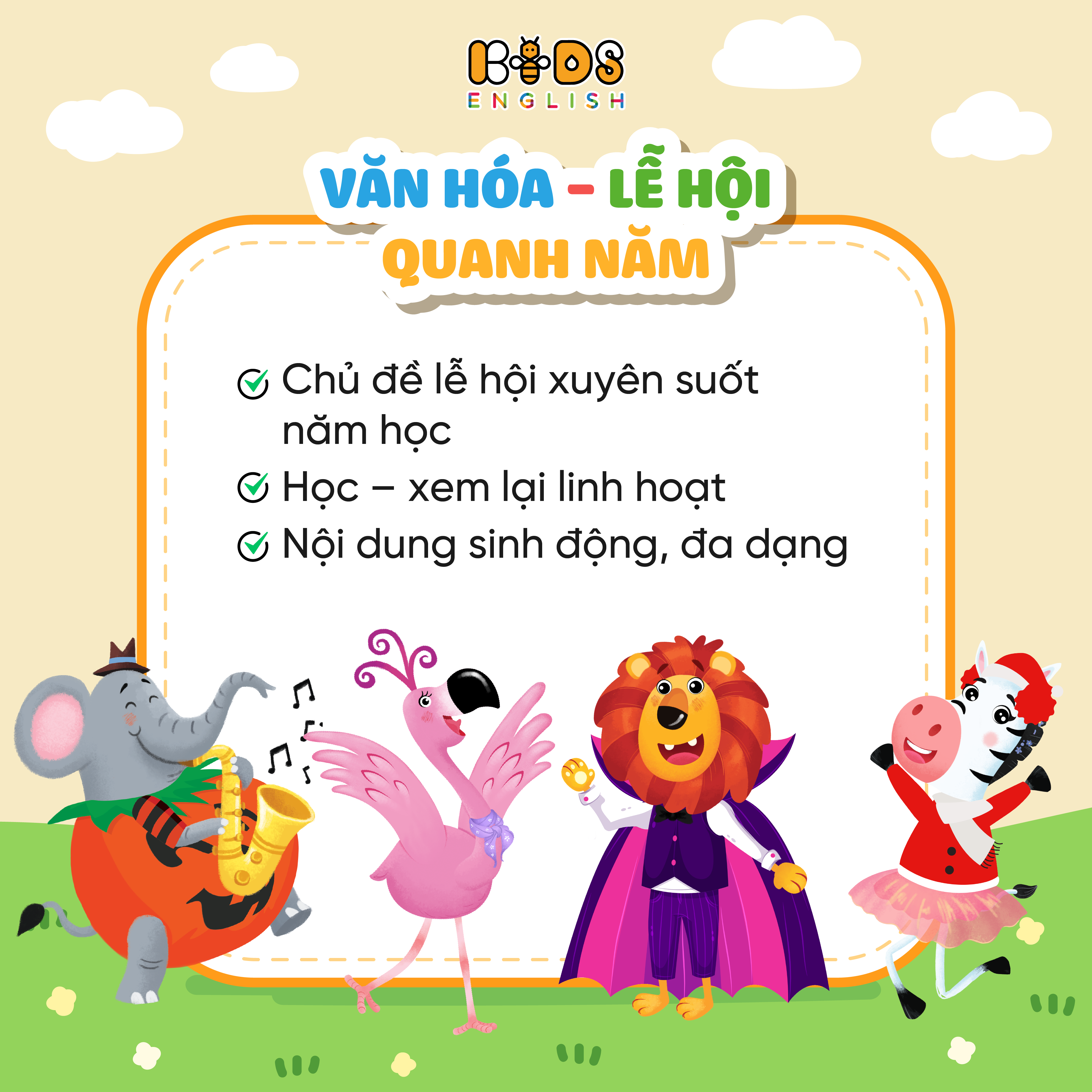 Ngôn ngữ không tách rời văn hóa. Vì vậy, KIDSEnglish bổ sung kho Bài học Văn hóa – Lễ hội được phân chia độc lập với chương trình chính.