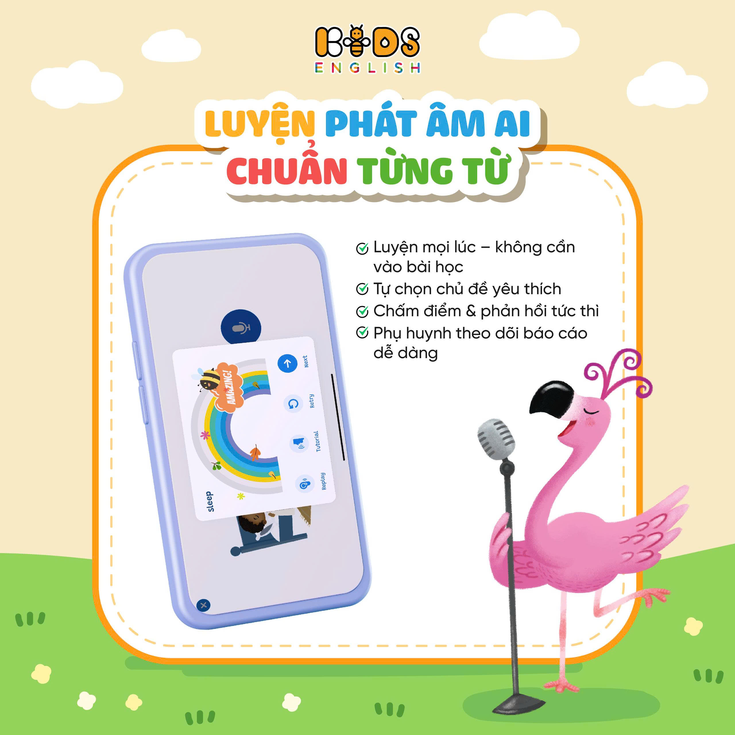 Tính năng này giúp trẻ hình thành phản xạ ngôn ngữ tự nhiên, đồng thời xây dựng sự tự tin khi nói tiếng Anh ngay từ những năm đầu đời.